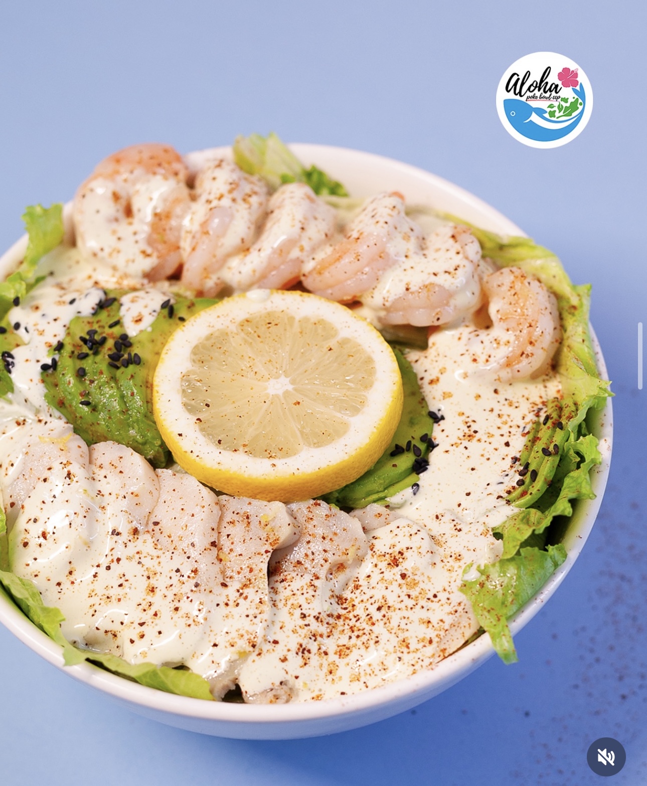 Una explosión de frescura con carácter. Camarones y pollo al vapor bañados en una cremosa salsa cítrica con un toque picante, sobre una cama de lechuga fresca, palta en abanico y un toque de limón que eleva cada bocado. Espolvoreado con sésamo negro y ají en polvo para ese kick final.
